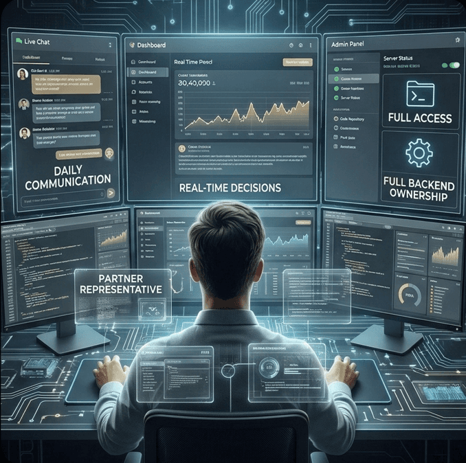 We stay embedded. Daily communication. Real-time decisions. Full backend ownership.
